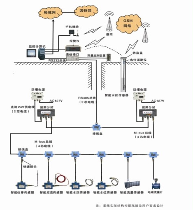 礦井水文監(jiān)測系統(tǒng)是對水壓(水位)、水溫、流量等有關(guān)水文參數(shù)進行自動測量和記錄的自動化監(jiān)測系統(tǒng)。系統(tǒng)集水溫數(shù)據(jù)采集、數(shù)據(jù)處理、數(shù)據(jù)網(wǎng)絡(luò)共享、水害預(yù)警、輔助決策于一體,采用現(xiàn)代化監(jiān)測手段對地下水的各種參數(shù)進行監(jiān)測,從而能夠及時掌握水文動態(tài),達到對水害事故的早發(fā)現(xiàn)、早預(yù)報、早防治等效果。